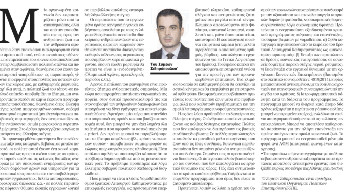 [2] Ελληνικός Οργανισμός Πολιτικών Επιστημόνων (ΕΟΠΕ), “PolicyPaper: Προβλήματα Αστικών Κέντρων” κεφάλαιο “Κρατικός Λειτουργός Καθημερινότητας” (επικείμενη δημοσίευση www.hapsc.org), 2019.